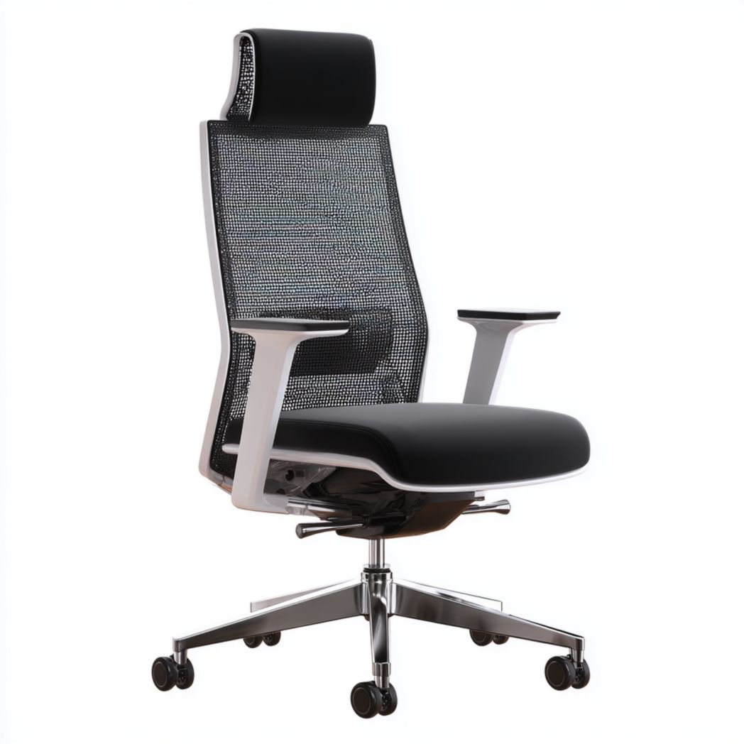 Chaise de bureau pivotante avec dossier en maille, appui-tête et accoudoirs - Noir et Blanc