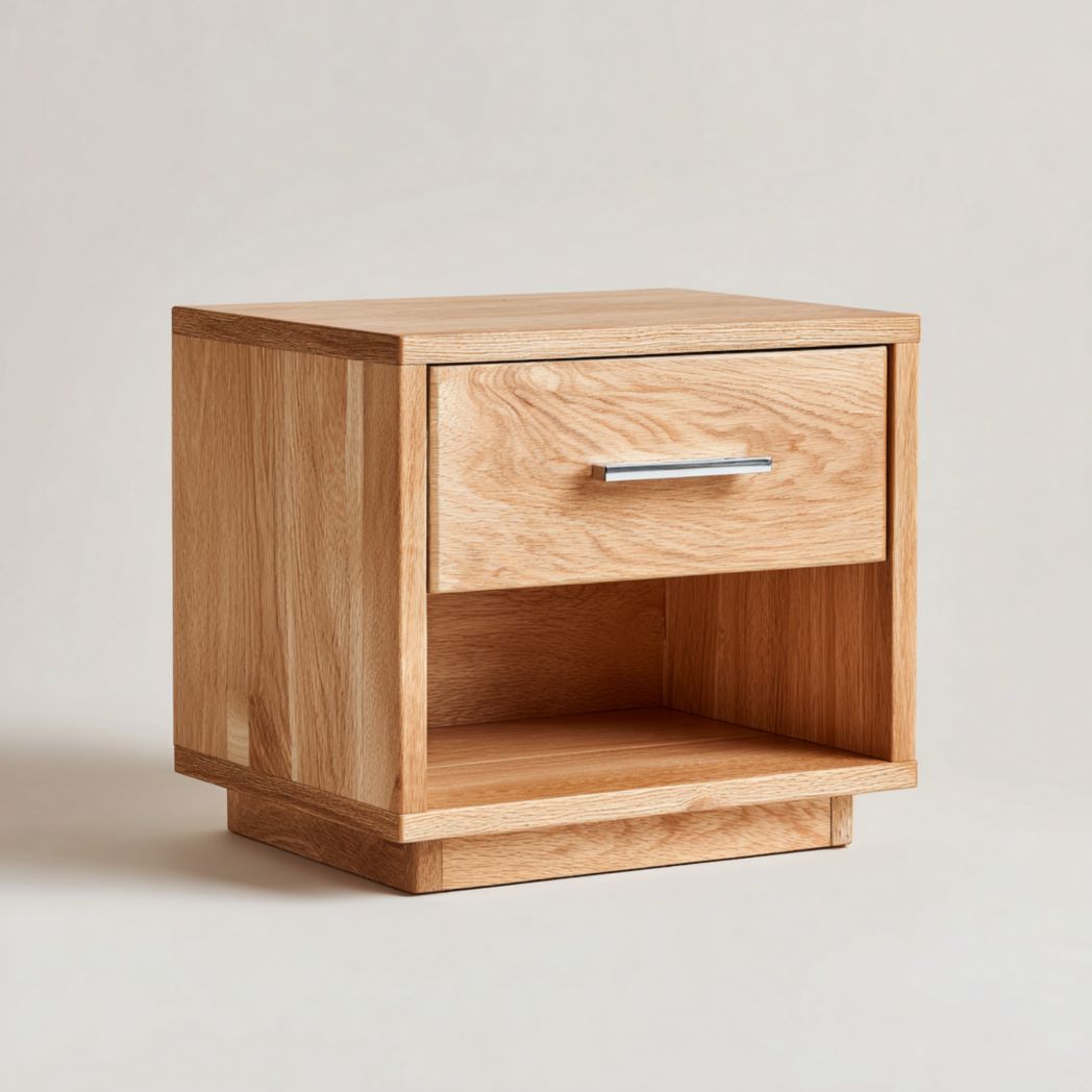 Table de chevet en chêne avec un tiroir et une niche ouverte