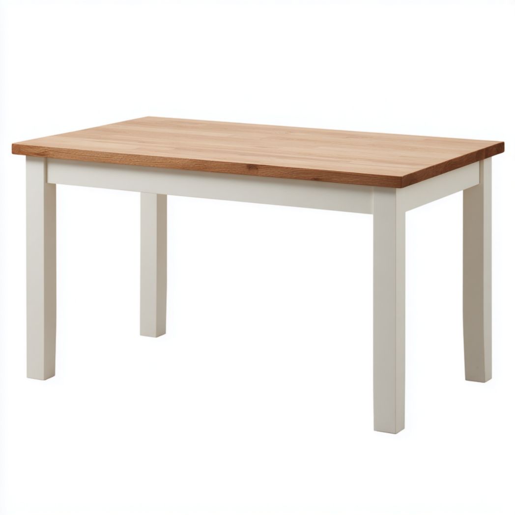 Table de repas rectangulaire bicolore avec plateau en chêne et structure blanche
